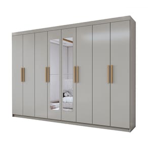 O(a) Guarda-Roupa Casal Aurora 8 Portas 4 Gavetas com Espelho Taupé - Loja é produzido em MDP na escala de brilho Semi-Brilho, e possui um grau de dificuldade de montagem: Médio.