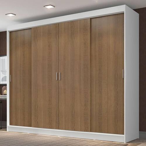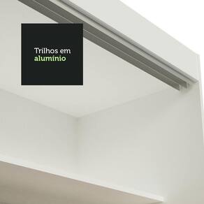 O móvel conta com quatro portas de correr com deslizamento suave, trilhos em alumínio para maior resistência e quatro puxadores externos. Além disso, o sistema anti-descarrilhamento evita com que as portas saiam do trilho e transmitem mais segurança no uso diário.