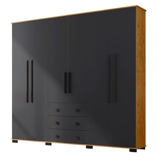 O Guarda Roupa B23063 foi desenvolvido pela Araplac para oferecer funcionalidade, elegância e durabilidade. Com 6 portas e 3 gavetas proporciona amplo espaço interno para manter as roupas, acessórios e objetos pessoais sempre organizados. Seu design moderno se adapta a todos os espaços, adicionando elegância ao ambiente. Confira as características técnicas e aproveite.