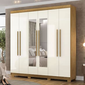 O(a) Guarda-Roupa Casal Bahamas 6 Portas 2 Gavetas com Espelho Natural/Champanhe - Pnr Móveis é produzido em MDP na escala de brilho Impressão UV, e possui um grau de dificuldade de montagem: Médio.