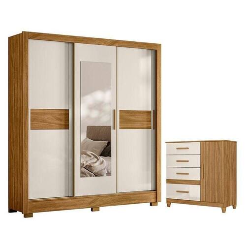 Guarda Roupa Casal Bahamas e Cômoda Vênus com Pés Freijó Off White Moval