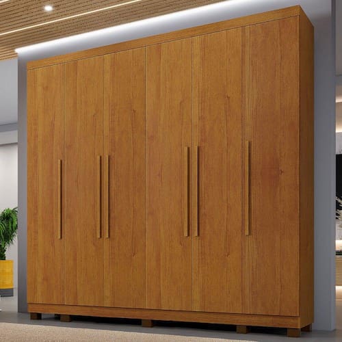 O(a) Guarda-Roupa Casal Bari 6 Portas 6 Gavetas Cinamomo - Loja é produzido em MDP na escala de brilho Fosco, e possui um grau de dificuldade de montagem: Médio.