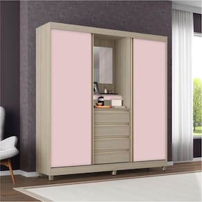 Desenvolvido em MDP de qualidade, possui duas portas, conjunto de rodízios reguláveis que deslizam sobre resistentes trilhos em alumínio, espaço interno amplo, prateleiras e cabideiros metálicos, gavetas externas, um maravilhoso espelho, porta jóias e maior durabilidade para que você aproveite ainda mais o produto.