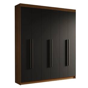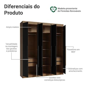 Possui uma pintura de alta resistência, que garante durabilidade e um acabamento impecável por muito mais tempo. A estrutura é em tom amadeirado Rustic, as portas e puxadores na cor Preta. Os puxadores de 80 cm, fabricados em MDF, são um dos grandes diferenciais, trazendo um design alongado e moderno.