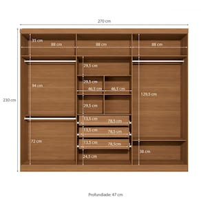 O(a) Guarda-Roupa Casal Beaumont 6 Portas 3 Gavetas Canela/Grafite - Kappesberg é produzido em MDP na escala de brilho Fosco, e possui um grau de dificuldade de montagem: Médio.