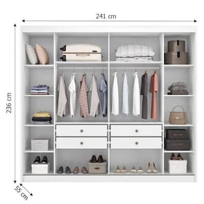Guarda Roupa Casal Belmonte 2 Portas 4 Gavetas Neve com Espelho Horizonte