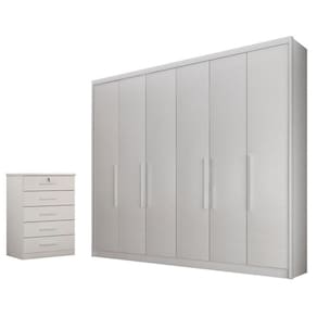 Guarda Roupa Casal Bolonha e Gaveteiro Suiça Neve - Novo Horizonte