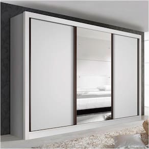 Guarda Roupa Casal Branco Com 3 Espelho 3 Portas Minastex Com muito charme e elegancia, o Guarda-Roupa veio para transformar o seu espaco de uma vez por todas! De design classico ele conta com um espaco interno perfeito para manter a organizacao e o visual do seu comodo sempre em dia. Um quarto do jeitinho que voce sempre quis? Nos temos o movel certo! Caracteristicas: Estilo: Moderno Acabamento: Pintura Possui Pes: Nao Possui Portas: Sim Tipo de Porta: Correr Possui Gavetas: Sim Tipo de Gaveta: Interna Escala de Brilho: Brilhante Possui Calceiros: Sim Material da Porta: MDP Origem do Produto: Possui Cabideiros: 03 Ambiente Principal: Quarto Formato do Espelho: Retangular Material da Gaveta: MDP Material Principal: MDP Possui Prateleiras: Sim Acabamento da Porta: Pintura Acabamento da Gaveta: Pintura Tipo de Guarda-roupa: Casal Material da Prateleira: MDP Quantidade de Espelhos: 03 Espelhos com Tamanhos Iguais Acabamento da Prateleira: Pintura Complexidade da Montagem: Alta: deve ser montado por um montador especializado Tipo de Puxador da Porta: Embutido Escala de Brilho da Porta: Brilhante Tipo de Puxador da Gaveta: Embutido Escala de Brilho da Gaveta: Brilhante Tipo de Fixacao do Espelho: Parafusos Tipo de Corredica da Gaveta: Metalica Telescopica Material do Puxador da Porta: Plastico Escala de Brilho da Prateleira: Brilhante Tipo de Dobradica/Corredica da Porta: Aluminio Possui Espelhos: Sim Gaveta com Chave: Nao Necessita Montagem: Sim Possui Painel de : Nao Gaveta com Divisores: Nao Possui Espelho Interno: Nao Possui Organizador de Gaveta; Nao Possui Espaco para Vestidos Longos: Sim Sistema de Montagem: Parafusos e Minifix Espessura do Espelho: 3 mm Peso Maximo por Gaveta; 10 kg Peso Maximo por Prateleira; 5 kg Guarda-Roupa Suporta Ate (kg): 90 kg Possui Sapateira: Nao Recomendacoes de Uso, Manutencao e Limpeza: Limpar com flanela limpa e seca. Nao usar produtos abrasivos. Quantidade de Portas: 3 Quantidade de Gavetas: 6 Quantidade de Prateleiras: 11