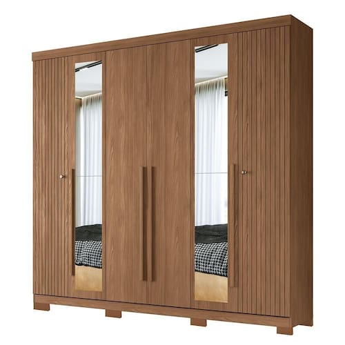 Guarda Roupa Casal Buriti Ripado 6 Portas com Espelho e Pés - Santos Andirá