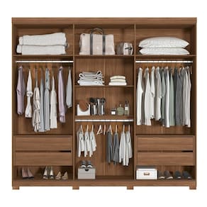 O Guarda-Roupa Buriti possui um design diferenciado e atemporal. São 6 portas, sendo 2 delas em MDF e com detalhe usinado ripado e puxadores pontuais em ABS para abertura. As demais portas em MDP seguem com puxadores em MDF revestido em formato grande. Internamente, possui 7 amplas prateleiras com muito espaço para guardar os pertences, 3 cabideiros em alumínio de excelente qualidade para pendurar as roupas, 4 gavetas com corrediças telescópicas que suportam muito mais peso, compartimento para guardar pertences de valor. Externamente, o acabamento é em textura Reverse semi fosco, suave ao toque, e que facilita a limpeza.