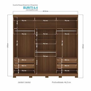 Tipo de Guarda Roupa: Casal | Tonalidade: Multicolorido | Quantidade de Portas: 6 | Fabricante: Santos Andirá Cor: Jatobá