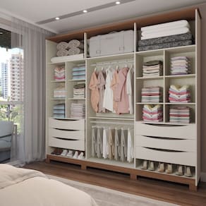 O(a) Guarda-Roupa Casal Calábria 6 Portas 6 Gavetas Nature/Off White - Loja é produzido em MDP na escala de brilho Fosco, e possui um grau de dificuldade de montagem: Médio.