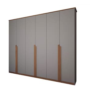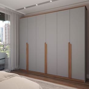 O(a) Guarda-Roupa Casal Calábria Slim 6 Portas 6 Gavetas Cinza/Nature - Loja é produzido em MDP na escala de brilho Fosco, e possui um grau de dificuldade de montagem: Médio.