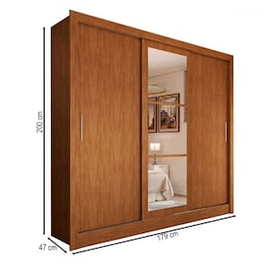 O(a) Guarda-Roupa Casal Cali Slim 3 Portas com Espelho Cinamomo - Loja é produzido em MDP na escala de brilho Semi-Brilho, e possui um grau de dificuldade de montagem: Médio.