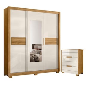 Organize seu quarto com elegância e o melhor custo benefício do mercado. Apresentamos o Guarda Roupa Casal Canadá e Cômoda Dhara fabricados pela Moval. Guarda Roupa com 03 portas deslizantes e 03 gavetas com corrediças telescópicas, espelhos inclusos, puxadores em MDF, cabideiro e calceiros em alumínio para melhor organização interna, sistema anti-empeno metálico, espaço ideal para roupas longas e pés em PVC. A cômoda possui 04 gavetas com corrediças telescópicas, moldura lateral de 25mm e tampo de 15mm, puxadores em MDF e pés em PVC. Fabricado com materiais de alta qualidade que garante resistência e durabilidade ao produto. Confira mais detalhes e aproveite!