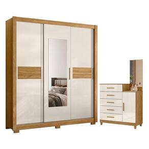 Organize seu quarto com elegância e o melhor custo benefício do mercado. Apresentamos o Guarda Roupa Casal Canadá e Cômoda Lisboa fabricados pela Moval. Guarda Roupa com 03 portas deslizantes e 03 gavetas com corrediças telescópicas, espelhos inclusos, puxadores em MDF, cabideiro e calceiros em alumínio para melhor organização interna, sistema anti-empeno metálico, espaço ideal para roupas longas e pés em PVC. A cômoda possui 05 gavetas com corrediças metálicas, painel com espelho, puxadores em MDF e pés em PVC. Fabricado com materiais de alta qualidade que garante resistência e durabilidade ao produto. Confira mais detalhes e aproveite!
