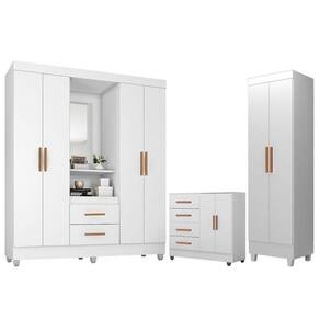 Guarda Roupa Casal Capela com Cômoda 4 Gavetas 2 Porta e Armário Multiuso Lite Branco Brilho - Móveis Leão