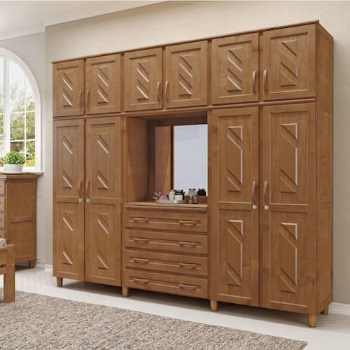 Guarda-Roupa Casal Capelinha 10 Portas 4 Gavetas com Espelho Grécia em Madeira Cavazotto