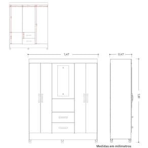 O Guarda Roupa Mobi Capela possui 4 portas e 2 gavetas externas, cabideiros e prateleiras para acomodar as suas roupas, sapatos e objetos pessoais. Ele acompanha um espelho central e prateleiras externas, ideal para guardar acessórios de beleza, um diferencial que proporciona um melhor aproveitamento de espaço, garantindo charme ao seu quarto.