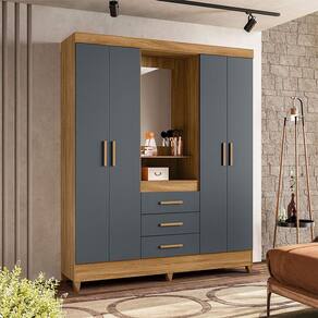 Guarda Roupa Casal Capelinha Ambiente Capri 4 Portas Freijó Cinza com Espelho - Moval