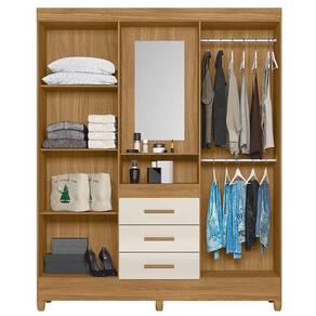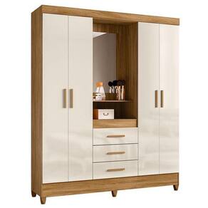 Guarda Roupa Casal Capelinha Capri 4 Portas Freijó Off White com Espelho - Moval