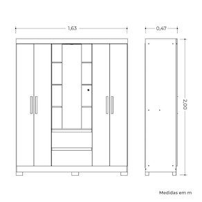 Dimensões: Tamanho do Produto (L x A x P): 163 x 200 x 47 cm