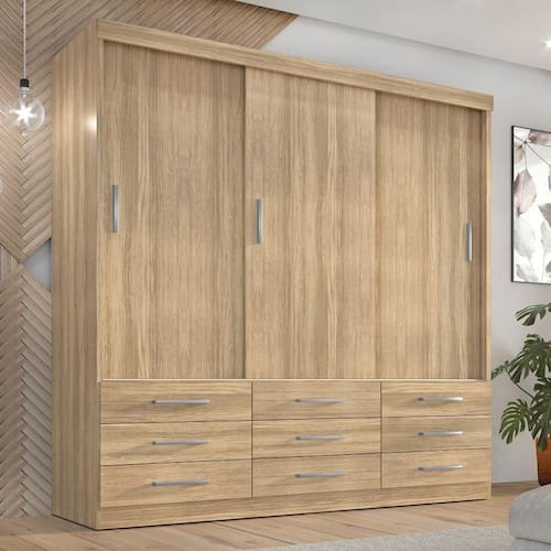 Guarda-Roupa Capri 3 Pts | Se você está buscando um guarda-roupa moderno, elegante e funcional para manter suas roupas e acessórios organizados, então o Guarda-Roupa Capri é a escolha certa para você! Com um design incrível que irá transformar o seu quarto, este móvel é perfeito para quem busca praticidade e estilo em um só lugar. Com 3 portas de correr e uma distribuição interna inteligente, o Guarda-Roupa Capri possui cabideiro, prateleiras e gavetas espaçosas, oferecendo amplo espaço para armazenar todas as suas peças.