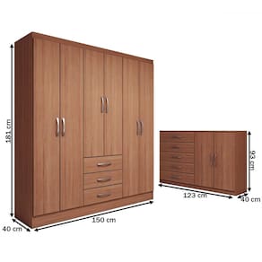 O(a) Guarda-Roupa Casal Carter 6 Portas 3 Gavetas com Cômoda 2 Portas 5 Gavetas Cinamomo - Loja é produzido em MDP na escala de brilho Fosco, e possui um grau de dificuldade de montagem: Médio.