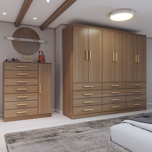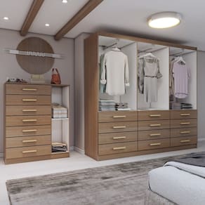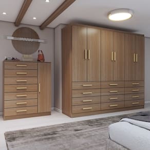 O(a) Guarda-Roupa Casal Catedral 6 Portas 12 Gavetas e Cômoda 1 Porta 7 Gavetas Demolição - Loja é produzido em MDP na escala de brilho Semi-Fosco, e possui um grau de dificuldade de montagem: Médio.