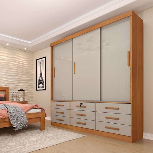 que tal o guarda-roupa chicago? para completar o quarto de casal e manter a organização, nada hor do que o guarda-roupa chicago. com bom espaço interno, ele é todo dividido para cada um encontrar a organização que hor atender ao seu dia a dia - camisetas, camisas, calças, acessórios, tudo encontra lugar. com acabamentos especiais que deixam a rotina mais prática, o móvel tem puxadores em mdf e portas com trilho antiqueda, garantindo um uso hor e, claro, mais durabilidade. tudo de bom, né? Marca: Modern