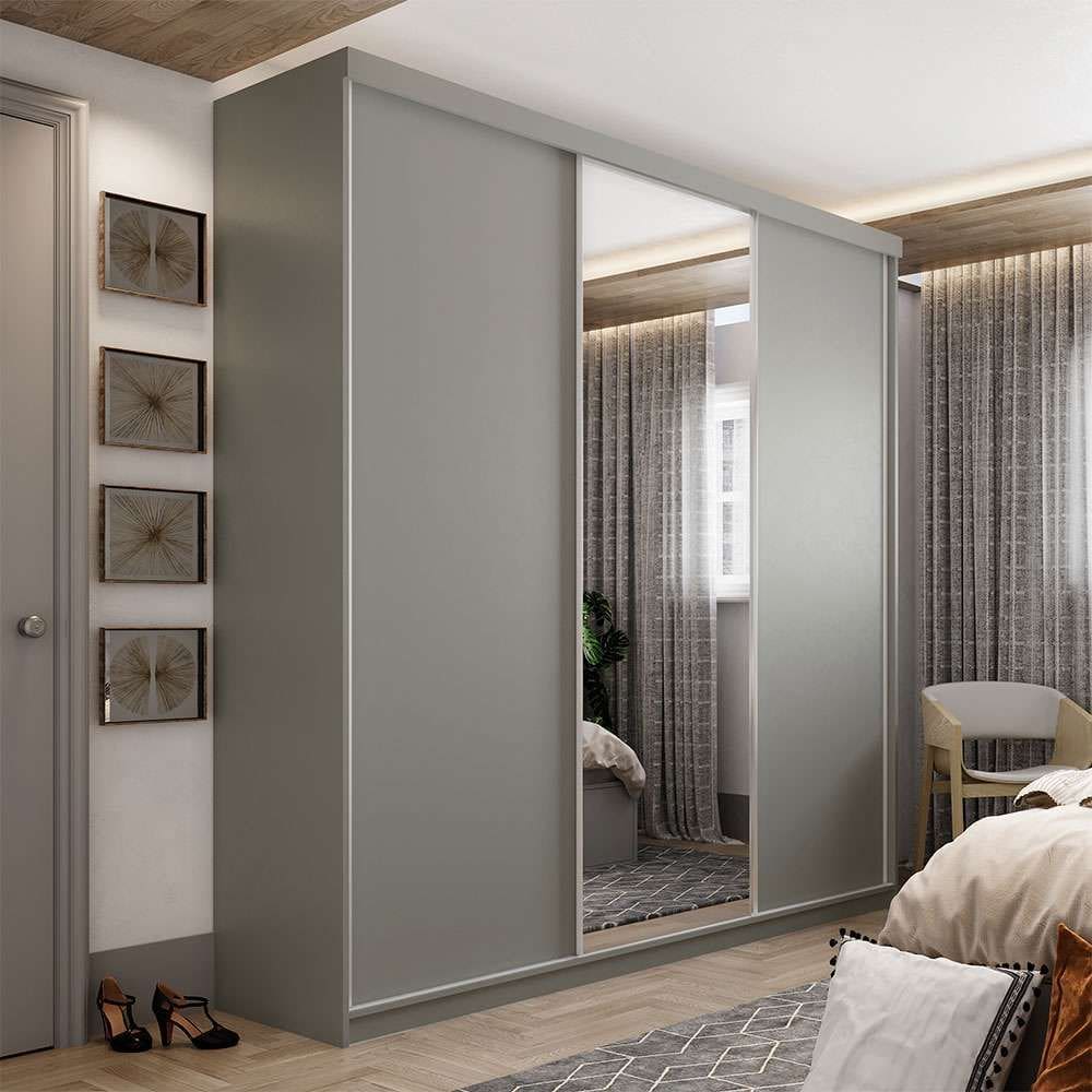 guarda roupa casal cinza com espelho