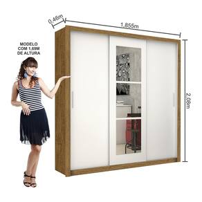 Guarda Roupa 3 Portas de Correr com Espelho Clarice com 185,5cm de largura, 208cm de altura e 46cm de profundidade. Deixa o seu quarto com um visual sofisticado. Ideal para cabides de até 37cm, ele possui em seu interior 4 gavetas e 4 prateleiras para guardar suas roupas de cama, banho e o que mais for preciso, com a elegância e qualidade.