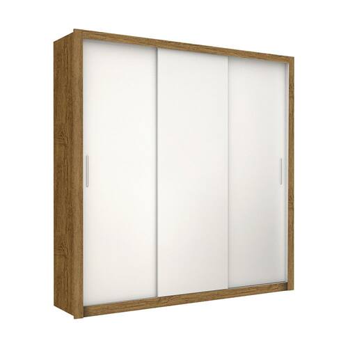 Guarda Roupa 3 Portas de Correr Clarice com 185,5cm de largura, 208cm de altura e 46cm de profundidade. Deixa o seu quarto com um visual sofisticado. Ideal para cabides de até 37cm, ele possui em seu interior 4 gavetas e 4 prateleiras para guardar suas roupas de cama, banho e o que mais for preciso, com a elegância e qualidade.