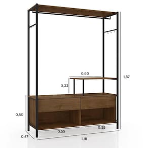 O Guarda Roupa Casal Closet Barcelona 2 Gavetas - Artefamol, é o móvel ideal para trazer charme e elegância para seu quarto. Possui design moderno que vai valorizar a decoração do ambiente. Produzido com tubos em aço carbono e MDP de ótima qualidade, que proporciona maior durabilidade e resistência ao produto. Conta com cabideiros com 6 ganchos, prateleira, nichos e 2 gavetas. Um novo conceito de roupeiro, prático para organizar roupas e acessórios.