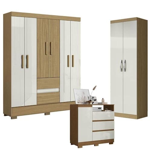 Buscando conjunto de guarda roupas, armário multiuso e cômoda ideal para deixar o quarto mais moderno e prático? Com design simples e atemporal, apresentamos o Guarda Roupa Casal Coimbra, o Armário Multiuso 2000192 e Cômoda 2014143 desenvolvidos pela Aramóveis, contam com amplo espaço interno para manter a organização das roupas, sapatos e outros pertences, confira e aproveite!