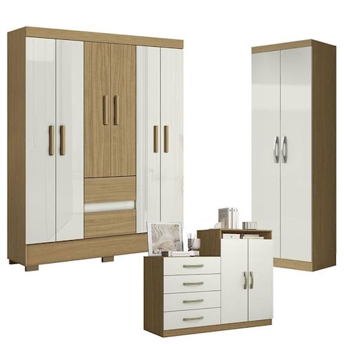 Buscando conjunto de guarda roupas, armário multiuso e cômoda ideal para deixar o quarto mais moderno e prático? Com design simples e atemporal, apresentamos o Guarda Roupa Casal Coimbra, o Armário Multiuso 2000192 e Cômoda Sapateira Londres desenvolvidos pela Aramóveis, contam com amplo espaço interno para manter a organização das roupas, sapatos e outros pertences, confira e aproveite!