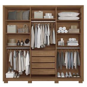 ESPECIFICAÇÕES: Estrutura em MDP Pintura UV 6 Portas Dobradiças metálicas com sistema de amortecimento Puxadores em madeira revestidos nas portas 4 Gavetas Corrediças telescópicas Puxadores em ABS Cabideiros em alumínio oblongo Prateleiras Maleiro Amplo espaço interno Acompanha pés