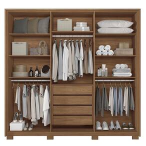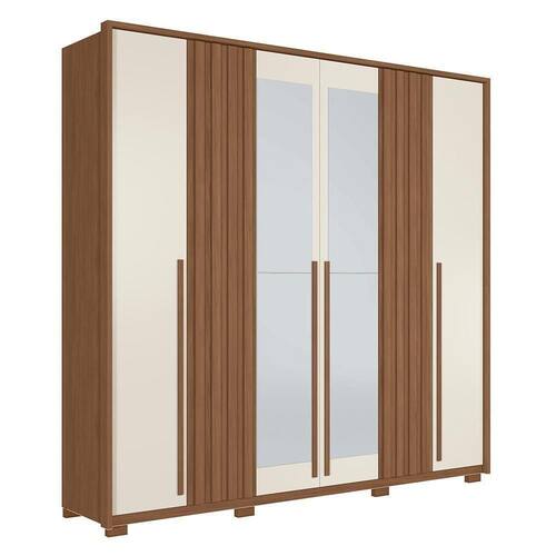 Guarda Roupa Casal Coimbra 6 Portas Jatobá/areia Com Espelho E Pés - Santos Andirá Jatobá/areia Guarda Roupa Casal Coimbra 6 Portas com Espelho e Pés - Santos Andirá O Guarda-Roupa Casal Coimbra 6 Portas combina elegante e funcionalidade para um ambiente organizado. Com estrutura em MDP e pintura UV, garantia durabilidade e resistência. Suas seis portas possuem dobradiças metálicas com amortecimento, proporcionando um fechamento suave. Os puxadores em madeira revestida trazem um toque sofisticado. Conta com quatro gavetas com corrediças telescópicas, cabideiros em alumínio oblongo, prateleiras e maleiro, oferecendo amplo espaço interno para armazenar roupas e acessórios com praticidade. ESPECIFICAÇÕES: - Estrutura em MDP - Pintura UV - 6 Portas - Dobradiças metálicas com sistema de amortecimento - Puxadores em madeira revestidos nas portas - Espelhos em 2 portas - 4 Gavetas - Corrediças telescópicas - Puxadores em ABS - Cabideiros em alumínio oblongo - Prateleiras - Maleiro - Amplo espaço interno - Acompanha pés