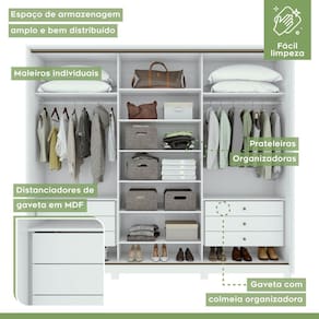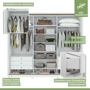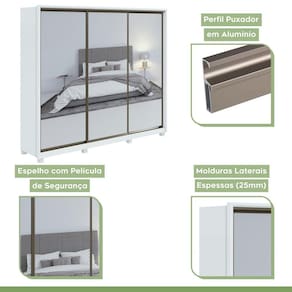 O móvel ideal para completar seu dormitório está aqui. Com este lindo Guarda Roupa Spazio Super Glass, você saberá exatamente onde encontrar suas roupas. Feito com MDF, ele possui corrediças telescópica e o visual perfeito para fazer parte do seu lar. Incrível, né? Aproveite! Acabamento da Prateleira: Pintura Escala de Brilho da Prateleira: Fosco Possui Cabideiros: 02 Acabamento da Gaveta: Pintura Escala de Brilho da Gaveta: Fosco Material do Puxador da Gaveta: Alumínio Possui Organizador de Gaveta: Sim Acabamento da Porta: Pintura Escala de Brilho da Porta: Fosco Material do Puxador da Porta: Alumínio Acabamento dos Pés: Pintura Acompanha Cama Auxiliar: Acompanha Colchão: Altura da Cama: Altura do Espelho: 218.8 Altura do Espelho 01: Altura do Espelho 02: Altura do Espelho 03: Altura do Espelho 04: Altura do Espelho 05: Altura do Espelho 06: Altura dos Pés: 7 Ambiente Principal: Quarto Cama Auxiliar Acompanha Colchão: Cama Auxiliar Suporta Até (kg): Cama Suporta Até (kg): Complexidade da Montagem: Alta: deve ser montado por um montador especializado Cor: Branco Cor do Produto: Branco Cor Flex: Cor Interna: Escala de Brilho: Fosco Espessura do Espelho: 3 Fita Integrada: Formato do Espelho: Retangular Gaveta com Chave: Não Guarda-Roupa Suporta Até (kg): 100 Informações Complementares: Itens Inclusos: 1 Guarda Roupa, Kit Ferragens e Manual de Montagem. Largura da Cama: Largura do Espelho: 83 Largura do Espelho 01: Largura do Espelho 02: Largura do Espelho 03: Largura do Espelho 04: Largura do Espelho 05: Largura do Espelho 06: Linha ou Coleção: Spazio Super Glass Manual de Especificação Técnica: Manual de Montagem e Instalação: https://cdn2.madeiramadeira.com.br/atributo/m-veis-lopas/388528-gr-spazio-3-pts.pdf Material da Gaveta: MDF Material da Porta: MDF Material da Prateleira: MDF Material dos Pés: PVC Material Principal: MDF Montagem Flex: Necessita Montagem: Sim Origem do Produto: Nacional Peso: 251.53 Peso Máximo por Gaveta: 10 Peso Máximo por Prateleira: 5 Possui Calceiros: Não Possui Espaço para Vestidos Longos: Possui Espelho: Sim Possui Espelho Interno: Possui Ganchos: Possui iluminação: Possui Painel de TV: Possui Pés: 8 Possui Portas: 03 Possui Prateleiras: 10 Possui Sapateira: Profundida de Cama: Quantidade de Espelho: 03 Espelhos com Tamanhos Iguais Recomendações de Uso, Manutenção e Limpeza: Limpar somente com pano macio e seco, não colocar diretamente em incidência da luz solar, não colocar em lugar úmido. Sapatas Niveladoras: Não Sistema de Montagem: Parafusos e Minifix. Tamanho do Colchão Indicado (L x C): Tamanho do Colchão Indicado Cama Auxiliar: Tipo de Corrediça da Gaveta: Metálica Telescópica Tipo de Dobradiça/Corrediça da Porta: Alumínio Tipo de Estrado: Tipo de Fixação do Espelho: Molduras Tipo de Gaveta: Interna Tipo de Guarda-Roupa: Casal Tipo de Madeira Maciça: Tipo de Madeira Maciça da Gaveta: Tipo de Madeira Maciça da Porta: Tipo de Madeira Maciça da Prateleira: Tipo de Madeira Maciça do Puxador da Gaveta: Tipo de Madeira Maciça do Puxador da Porta: Tipo de Madeira Maciça dos Pés: Tipo de Puxador da Gaveta: Externo Tipo de Puxador da Porta: Externo