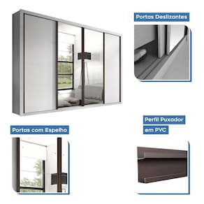 Sente que falta algo no seu dormitório? O que acha de mudar? Com o móvel certo é possível fazer muito pelo seu cantinho e o Guarda-Roupa Zara é a peça ideal para te ajudar a conquistar o cômodo que sempre quis. Com um ótimo espaço para roupas, roupas de cama, sapatos e acessórios, além de ficar sempre organizado, seu quarto também ganhará um toque de charme e um visual clássico. Com um espelho que vai ser ótimo para montar os looks do dia, esse móvel é também a promessa de um lugar de descanso com a sua cara e personalidade, como você sempre quis! :) Acabamento da Prateleira: Pintura Escala de Brilho da Prateleira: Brilhante Possui Cabideiros: Sim Acabamento da Gaveta: Pintura Escala de Brilho da Gaveta: Brilhante Possui Organizador de Gaveta: Não Acabamento da Porta: Pintura Escala de Brilho da Porta: Fosco Material do Puxador da Porta: Plástico Altura do Espelho: 60.5 Ambiente Principal: Quarto Complexidade da Montagem: Alta: deve ser montado por um montador especializado Cor: Branco Cor do Produto: Branco Escala de Brilho: Fosco Espessura do Espelho: 3 Formato do Espelho: Quadrado Gaveta com Chave: Não Itens Inclusos: 1 Guarda Roupa, Kit Ferragens e Manual de Montagem Largura do Espelho: 67 Linha ou Coleção: Zara Manual de Montagem e Instalação: https://product-hub-prd.madeiramadeira.com.br/842364/documents/1a06a205-16cd-46bf-8c34-5c0c3d2fc2bdirofirenze4pts516426516427.pdf Material da Gaveta: MDP Material da Porta: MDP Material da Prateleira: MDP Material Principal: MDP modular: Não Necessita Montagem: Sim Origem do Produto: Nacional Peso: 200 Peso Máximo por Gaveta: 10 Peso Máximo por Prateleira: 5 Possui Calceiros: 01 Possui Espelho: Sim Possui Pés: Não Possui Portas: Sim Possui Prateleiras: Sim Quantidade de Espelho: 06 Espelhos com Tamanhos Iguais Recomendações de Uso, Manutenção e Limpeza: Limpar com flanela limpa e seca. Não usar produtos abrasivos. Sistema de Montagem: Parafusos e Minifix Suporta Até (kg): 90 Tipo de Corrediça da Gaveta: Metálica Telescópica Tipo de Dobradiça/Corrediça da Porta: Alumínio Tipo de Fixação do Espelho: Parafusos Tipo de Gaveta: Interna Tipo de Guarda-Roupa: Casal Tipo de Puxador da Gaveta: Embutido Tipo de Puxador da Porta: Embutido