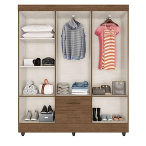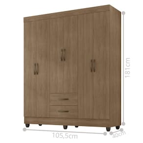 Feito em MDP. Contém 6 portas, 2 cabideiros em alumínio e 2 gavetas com corrediças metálicas, facilitando a abertura e deslizamento.