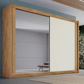 Guarda Roupa Casal com Espelho 2 Portas 4 Gavetas - Creta-Amêndoa/Off White - Móveis Europa