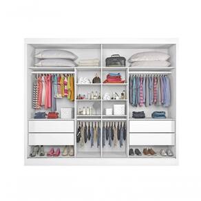 O Guarda Roupa Verona é o ideal para quem precisa de organização com pouco espaço. Este guarda roupa possui 2 portas de correr com deslizamento em trilho inferior de alumínio, para maior facilidade na abertura. São 04 gavetas com corrediças telescópicas, com abertura total das gavetas e deslizamento silencioso, o suporte de gaveta é de MDF, que proporciona mais resistência. Prateleiras espaçosas para roupas de cama e sapatos. Seu interior conta ainda com um nicho prático e funcional. Cabideiros e calceiro em alumínio, qualidade e durabilidade. As portas são fracionadas com perfil de alumínio, para evitar empeno e traz mais robustez e resistência para seu guarda roupa. Fabricado em MDF 100%, com chapas de 15mm que proporciona mais firmeza ao guarda roupa. E tudo isso com material ecologicamente correto. Perfeito não é? Aproveite!