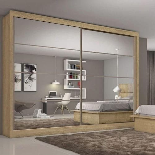 Guarda Roupa Casal Sevilha Espelhado, além de oferecer designer moderno e sofisticado, amplo espaço interno atendendo todas as necessidades. O guarda roupa é composto por duas portas de correr com um lindo espelho e todo fabricado com chapas de mdf. As portas deslizantes em trilho inferior de alumínio com roldanas com molas com sistema anti-descarrilhamento, que permite sofisticação e maior facilidade de abertura. As portas possuem perfil puxador e perfil das portas em alumínio na cor bronze, mais qualidade, durabilidade e beleza. O interno é sistema ele/ela com cabideiro e calceiro em alumínio proporcionando qualidade e durabilidade, gavetas espaçosas com corrediças telescópicas, permitindo abertura total das gavetas