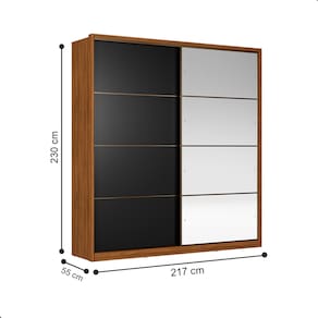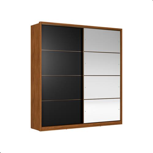 Guarda Roupa Casal Com Espelho 2 Portas Bari Nogueira Preto - Marrom