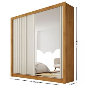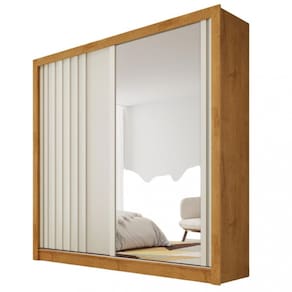 Características: Estrutura em MDF Acabamento em Pintura UV 2 Portas de correr 4 Gavetas Corrediças telescópicas Ripado Cabideiro em alumínio Puxador embutido