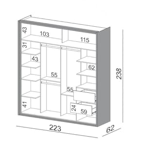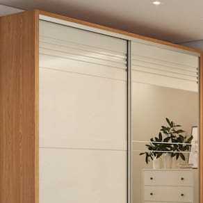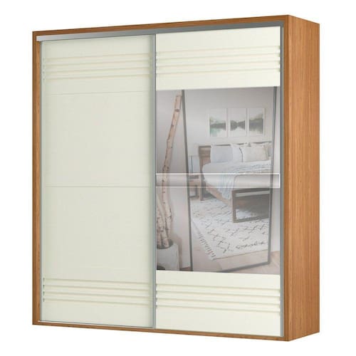 quarto de casal, pois as portas com abertura deslizante não atrapalham a circulação do ambiente. Além disso, possui um excelente compartimento interno com várias prateleiras, 2 gavetas e cabideiros, itens perfeitos para manter tudo no lugar e facilitar a visualização das peças.