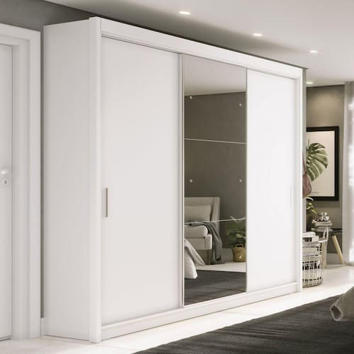 Um quarto moderno precisa de um móvel diferenciado, o Guarda Roupa Casal Viena foi desenvolvido para total conforto e modernidade, Possui três portas de correr sendo a porta central com espelho e perfis com puxadores de alumínio, tornando o móvel moderno, O Guarda Roupa é confeccionado em MDP de 12 mm e 15 mm com múltiplas repartições para armazenar roupas e objetos, além de possuir molduras laterais em MDP 25 mm, possui corrediças metálicas nas gavetas, trilhos de alumínio para melhor deslizamento das portas e ótimo acabamento em pintura U,V, de alta resistência para satisfazer as necessidades do cliente, Os materiais utilizados são de primeira qualidade e respeitam o meio ambiente, Acabamento da Prateleira: Pintura Texturizada UV Escala de Brilho da Prateleira: Fosco Possui Cabideiros: 02 Acabamento da Gaveta: Pintura Texturizada UV Escala de Brilho da Gaveta: Fosco Material do Puxador da Gaveta: Possui Organizador de Gaveta: Não Acabamento da Porta: Pintura Texturizada UV Escala de Brilho da Porta: Fosco Material do Puxador da Porta: Alumínio Acabamento dos Pés: Acompanha Cama Auxiliar: Acompanha Colchão: Altura do Espelho: 64,2 cm Ambiente Principal: Quarto Cama Auxiliar Acompanha Colchão: Complexidade da Montagem: Média: pode ser montado por mais de uma pessoa e/ou necessite de maior conhecimento para montagem Cor: Branco Cor do Produto: Branco Cor Flex: Não Cor Interna: Branco Cor Predominante: Branco Escala de Brilho: Fosco Espessura do Espelho: 3 mm Fita Integrada: Formato do Espelho: Retangular Gaveta com Chave: Não Guarda-Roupa Suporta Até (kg): 95 kg Informações Complementares: Itens Inclusos: 1 Guarda Roupa, Kit Ferragens e Manual de Montagem Largura do Espelho: 60 cm Linha ou Coleção: Yescasa Manual de Especificação Técnica: Manual de Montagem e Instalação: https://cdn2,madeiramadeira,com,br/atributo/fama-moveis/899905-famamoveis-manualdemontagem-guardaroupacasalviena-atualizado-1,pdf Material da Gaveta: MDP Material da Porta: MDP Material da Prateleira: MDP Material dos Pés: Material Principal: MDP Montagem Flex: Não Necessita Montagem: Sim Origem do Produto: Nacional Peso: 137,40 kg Peso Máximo por Gaveta: 4 kg Peso Máximo por Prateleira: 5 kg Possui Calceiros: 01 Possui Espaço para Vestidos Longos: Possui Espelho: Sim Possui Espelho Interno: Possui Ganchos: Possui iluminação: Possui Painel de TV: Possui Pés: Não Possui Portas: 03 Possui Prateleiras: 04 Possui Sapateira: Quantidade de Espelho: 03 Espelhos com Tamanhos Iguais Recomendações de Uso, Manutenção e Limpeza: A limpeza do móvel deve ser efetuada somente com pano macio e seco, Não utilizar produtos abrasivos ou similares, tais como: Cera