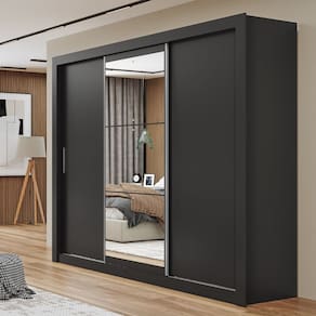 Um quarto moderno precisa de um móvel diferenciado, o Guarda Roupa Casal Viena foi desenvolvido para total conforto e modernidade, Possui três portas de correr sendo a porta central com espelho e perfis com puxadores de alumínio, tornando o móvel moderno, O Guarda Roupa é confeccionado em MDP de 12 mm e 15 mm com múltiplas repartições para armazenar roupas e objetos, além de possuir molduras laterais em MDP 25 mm, possui corrediças metálicas nas gavetas, trilhos de alumínio para melhor deslizamento das portas e ótimo acabamento em pintura U,V, de alta resistência para satisfazer as necessidades do cliente, Os materiais utilizados são de primeira qualidade e respeitam o meio ambiente, Acabamento da Prateleira: Pintura Texturizada UV Escala de Brilho da Prateleira: Fosco Possui Cabideiros: 02 Acabamento da Gaveta: Pintura Texturizada UV Escala de Brilho da Gaveta: Fosco Possui Organizador de Gaveta: Não Acabamento da Porta: Pintura Texturizada UV Escala de Brilho da Porta: Fosco Material do Puxador da Porta: Alumínio Altura do Espelho: 64,2 cm Ambiente Principal: Quarto Complexidade da Montagem: Baixa: pode ser montado por uma pessoa sozinha Cor: Preto Cor do Produto: Preto Cor Flex: Não Cor Interna: Preto Cor Predominante: Preto Escala de Brilho: Fosco Espessura do Espelho: 3 mm Formato do Espelho: Retangular Gaveta com Chave: Não Guarda-Roupa Suporta Até (kg): 95 kg Itens Inclusos: 1 Guarda Roupa, Kit Ferragens e Manual de Montagem Largura do Espelho: 60 cm Linha ou Coleção: Yescasa Manual de Montagem e Instalação: https://cdn2,madeiramadeira,com,br/atributo/fama-moveis/899905-famamoveis-manualdemontagem-guardaroupacasalviena-atualizado-1,pdf Material da Gaveta: MDP Material da Porta: MDP Material da Prateleira: MDP Material Principal: MDP Montagem Flex: Não Necessita Montagem: Sim Origem do Produto: Nacional Peso: 135 kg Peso Máximo por Gaveta: 4 kg Peso Máximo por Prateleira: 5 kg Possui Calceiros: 01 Possui Espelho: Sim Possui Pés: Não Possui Portas: 03 Possui Prateleiras: 04 Quantidade de Espelho: 03 Espelhos com Tamanhos Iguais Recomendações de Uso, Manutenção e Limpeza: A limpeza do móvel deve ser efetuada somente com pano macio e seco, Não utilizar produtos abrasivos ou similares, tais como: Cera