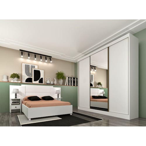 Guarda Roupa Casal com Espelho 3 Portas 4 Gavetas - Dacar-Neve - Tcil Móveis
